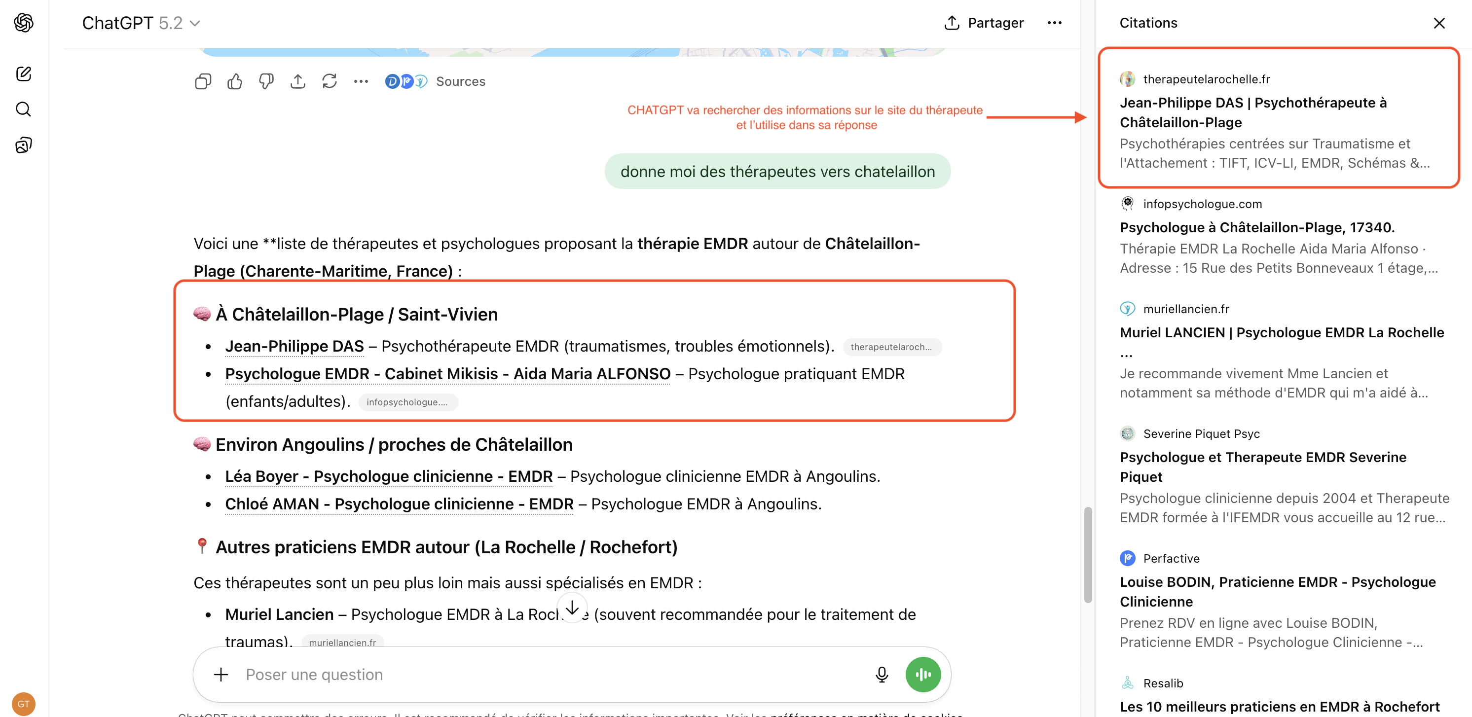 Si votre site publie régulièrement du contenu de qualité, bien référencé, sur des sujets liés à votre expertise, vous devenez une source que l'IA peut citer et recommander à ses utilisateurs. Un article bien positionné sur "meilleur thérapeute à La Rochelle" ou "comment choisir son plombier à Lyon" peut être repris par une IA quand quelqu'un lui pose la question.